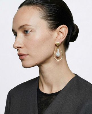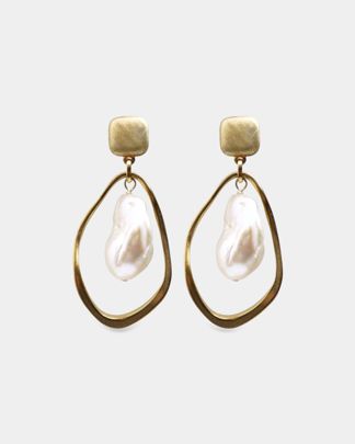 Серьги, натуральный барочный жемчуг, нерж. сталь в позолоте, покрытие родием, латунь в позолоте gold filled
