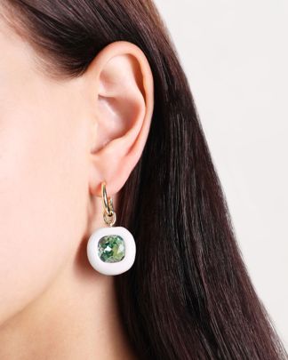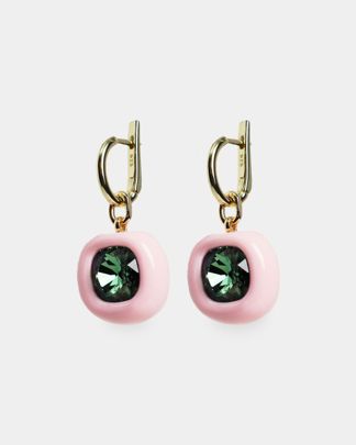 Серьги из латуни с золотистым финишем украшены подвеской из полимерной глины с лаковым покрытием. В центр подвески помещён овальный кристалл Swarovski. Тщательная отделка и продуманная конструкция обеспечивают долговечность и комфорт при носке.