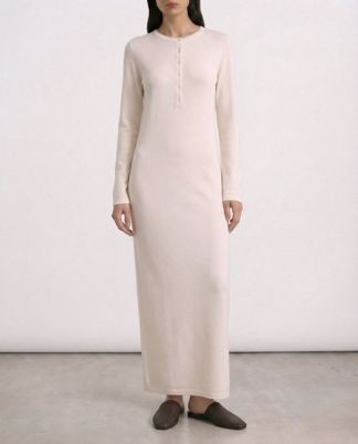 Платье Echo, вырез раунд, пуговицы спереди до талии, удлиненные рукава, длина макси, прямой крой, 100% кашемир